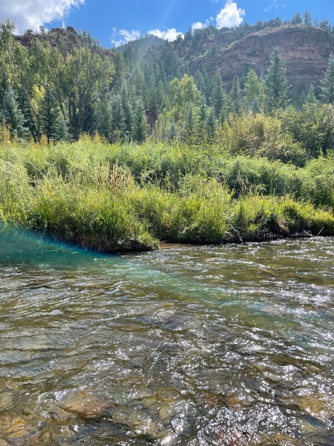 Sunday afternoon, with heavy Labor Day weekend traffic between Telluride and Montrose buzzing along the highway, I met up with my hunting buddy, Andrew Mull at a dirt pullout on the San Miguel River. First time in waders this year, and within a few minutes we were standing in water that was like watching rippling shapes through a discarded Heineken bottle. Stones in the riverbed were shades of rusted car fenders. Silverly riffles stretched from bank to bank like necklaces for sale at a swap meet. The air was hot, the water no deeper than my knees, and the fishing was expectantly slow, but considering we were floating grasshopper dry flies in the afternoon sun, I couldn’t expect it to be anything more than an opportunity to practice my casting. In the shadows of the river, I saw the ghost of my grandfather, Alfred Goddard, slowly making his way upstream, hip waders worn without a belt, the loose rubber gathered around his thighs. He wore an old-fashioned canvas creel slung across his chest, a spinning rod in his right hand, a limit of trout dangling from a stringer. He smiled at me from under a plantation hat that leaned to the side. He gave me a wink and lifted the fish in a greeting before fading back into the shadows. Such is the way of life and the movement of water.