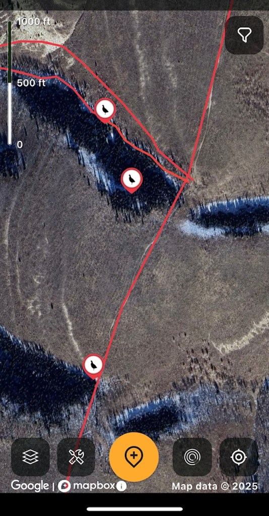 After that, it was time for the grouse hunt. My Danner Pronghorn boots kept me upright and protected my ankles from twists as I hiked the ridgelines. I revisited locations I had previously marked in the HuntStand app on my iPhone. The hike in and back took a total of three hours, and I saw no birds.